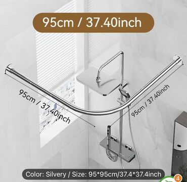 - Konstruksiya: 3 tərəfdən divara bərkidilən, duş guşəsi üçün L formalı əyri boru