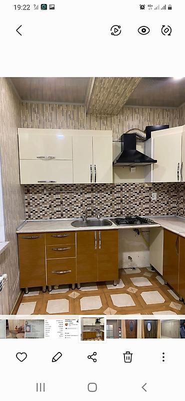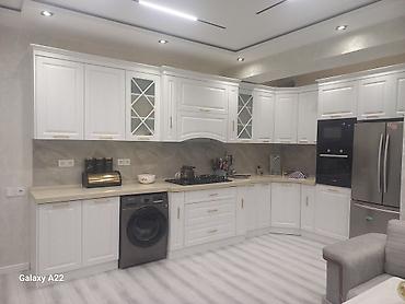 - Ölçü və plan: künc (L) yerləşim, həm alt, həm üst dolablar; künc bölməsi ilə geniş saxlama