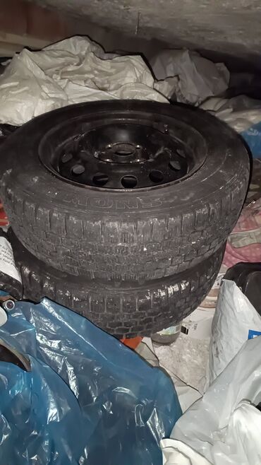 Avtomobil təkərləri satılır. - Ölçülər: 195/60 R14 (şin üzərində qeyd olunub) - Nümunə: asimmetrik protektor naxışı – yağışlı yollarda suyu effektiv kənarlaşdırmaq və yol tutuşunu artırmaq üçün - ...