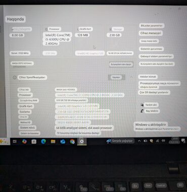 - Digər: veb-kamera, ThinkPad işıq göstəriciləri, Windows aktivləşdirmə bildirişi ekranda görünür