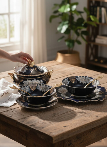 - Üslub: klassik, dekorativ, zərif süfrə təqdimatı üçün ideal