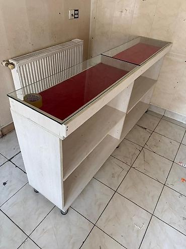 Nure vitrini – mağaza və anbarlar üçün vitrın polkalar (vitrin rəfləri) - Ümumi uzunluq: təxminən 12 metr+ - Hündürlük: 2 metr - Konstruksiya: paslanmayan metal boru karkas, möhkəm polkalar - Modu...
