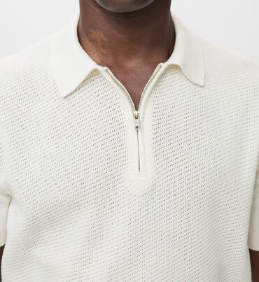 Kişi polo köynəyi - Rəng: tünd göy/qaraya yaxın - Qısaqol, klassik polo yaxa - Yaxada qısa metal fermuar (zip) – asan geyinmə və tənzimlənən açılış - Yaxa, qollar və ətək hissəsində ağ zolaqlı haş...