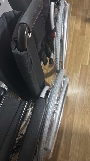 - Təkərlər: Böyük arxa təkərlər (əl ilə sürmə üçün), ön fırlanan təkərlər manevr üçün rahatdır. Təkərlərdə qoruyucu plyonka mövcuddur.