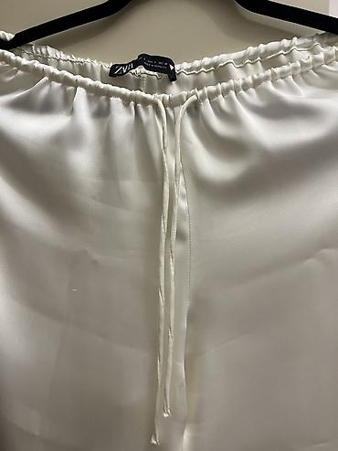 ZARA WOMAN COLLECTION geniş şalvar. xs razmerdir ama biraz oversize kimidir ona göre xs s m razmerelere gedir. az geyilib. özünden hafif parıltılı yüngül parçadır Широкие брюки со средней посадк...
