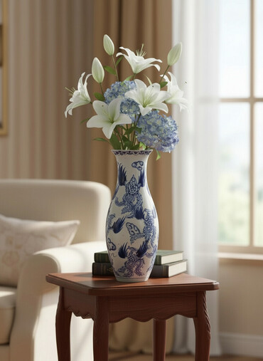 - Üstünlüklər: klassik mavi-ağ palitra çox interyerlərlə uyğunlaşır; əl işi üslubunda detallı naxışlar vurğulanıb