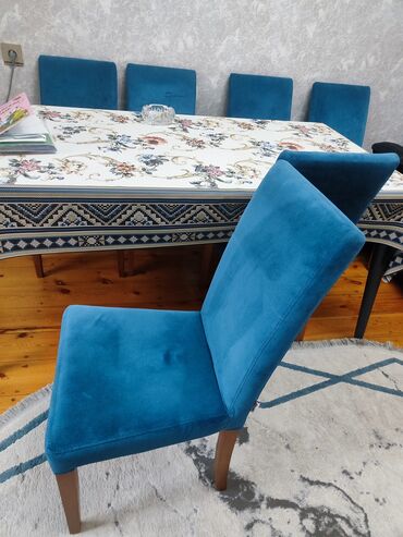 Mavi məxməri üzlü yemək otağı stulları Ve yenididir Heç bir il deyil almişam