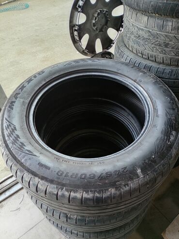 SUV və krossoverlərə uyğun 18” disklər üçün. Dəst şəklində bir neçə ədəd mövcuddur (şəkillərdə 4 ədəd görünür). Marka: Maxxis. Ölçü, sürət/yük indeksləri və istehsal nişanları yanlıqda qeyd olunub.