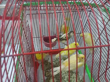 iki bala qefez 170m cütler qefez qarışıq 140m Məhsul təsviri: - Evdə bəslənən kanareyka quşları, bir neçə fərqli rəngdə: canlı sarı, açıq krem-sarı, narıncı tonlu və tünd zolaqlı-sarı qarışıq rəng...
