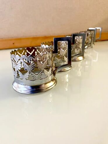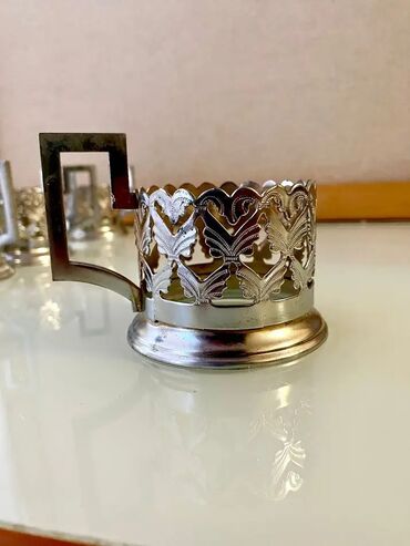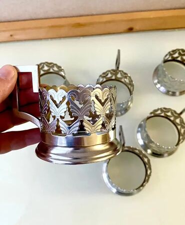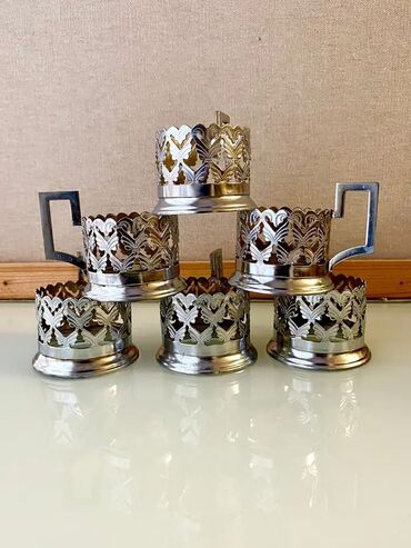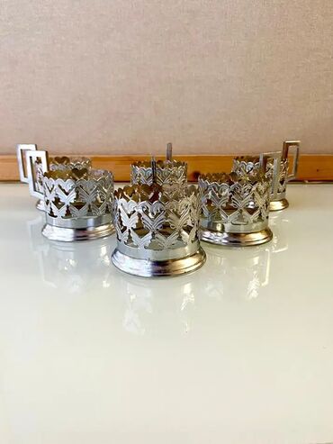 Latun podstakannik dəsti - Sayı: 6 ədəd - Material: latun (xrom