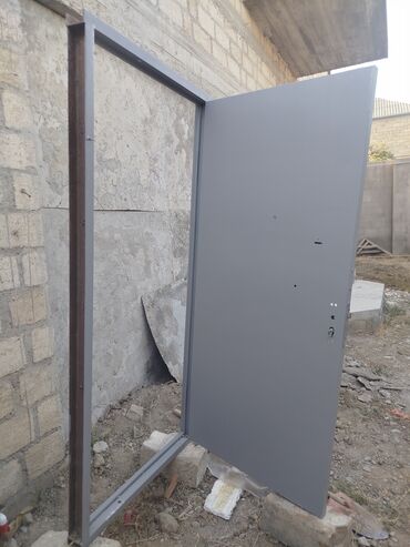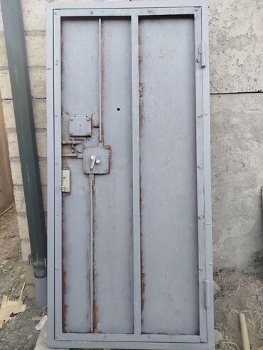 Metal qapı, boz rəngdə və sadə dizaynda. Razmeri: eni - 93 hündürlüyü - 207. Qlazokun yeri var. Yeni rənqlənib. Bu qapı müxtəlif növ binaların, anbarların və texniki otaqların əsas və ya köməkçi girişi üçün uyğundur. Daxili və xarici quraşdırma üçün nəzərdə tutulmuşdur. Cox ağır qapıdır. Sovetdən qalan. Ramasi 8-lik şveller. Qalın listen yiğilib. Yaxşi vəziyətdə. İçəri sola açılır.