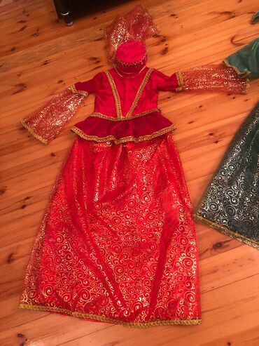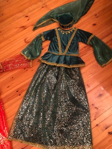 Qiz ucun milli geyim, üçlü dəst, yupkası , köyneyi, fatası var, 7-8-9-10 -11 yaşa uyğundur, Kirayesi 10 manata