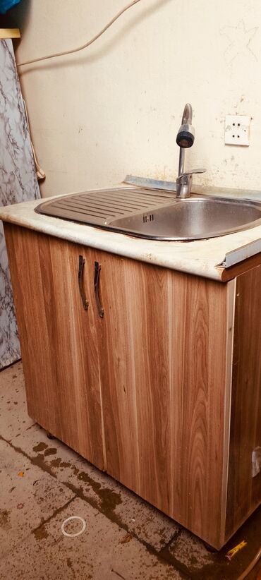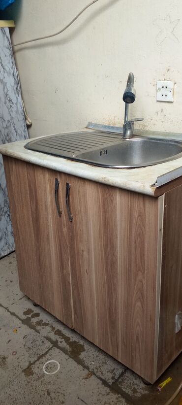 Dəst bir yerdə verilir: üst stol, daxilində quraşdırılmış paslanmayan polad moyka, kran və ikiqapılı alt dolab.