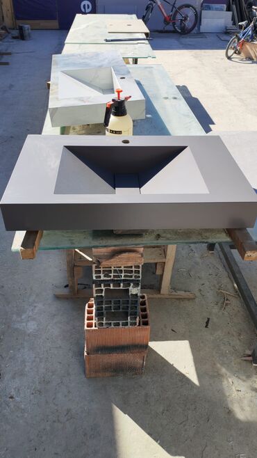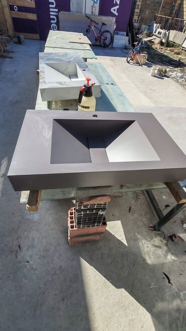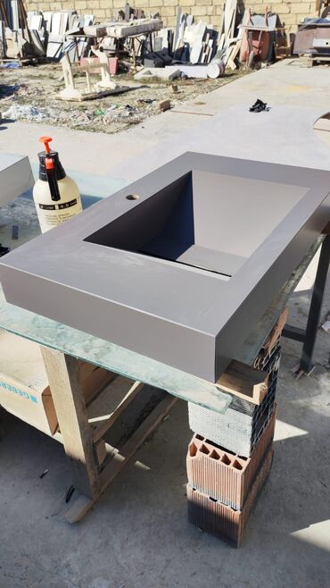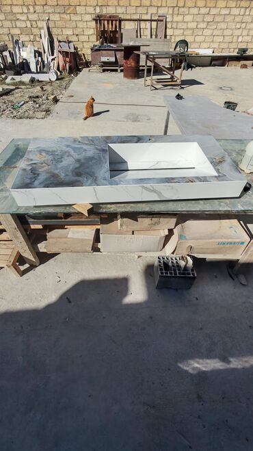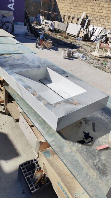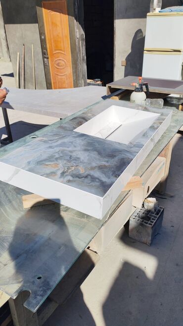 Mərmər/keramoqranit üstlü hamam lavabosu və masaüstü panel