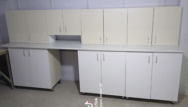 Mətbəx mebeli dəsti - Rəng: yuxarı modullar ağ, aşağı modullar qara, parlaq səthli - Komplekt: çoxsaylı asma şkaflar, alt dolablar, iki bölməli paslanmayan polad mətbəx çanağı və qarışdırıcı üçün ...