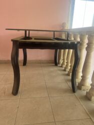Stol masa. (8 ədəd stul üstündə verilir) Uzunluğu 1.65, açılanda 2.1 Eni 1 metr. Stol əla vəziyyətdə, stulun bəzilərinin təmirə ehtiyacı var. Gənclik tərəfdədir.