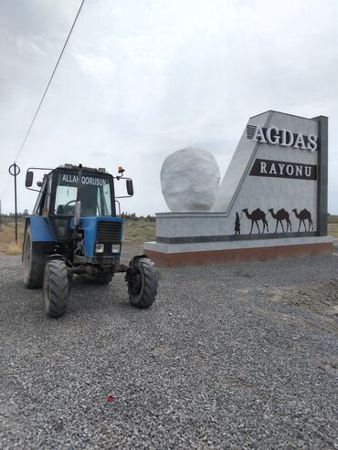 Mavi rəngli MTZ tipli təkərli traktor - Kabinli, ön şüşə və yan