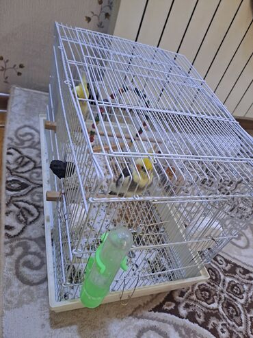 korella) cütlüyü və tam komplekt qəfəs - Qəfəs: metal konstruksiya, üst hissəsi geniş, alt hissəsi çirk saxlayan örtü ilə əhatələnib. - Aksesuarlar: 2 ədəd yem/yuva qabı, su qabı (yan hissəyə bərk...
