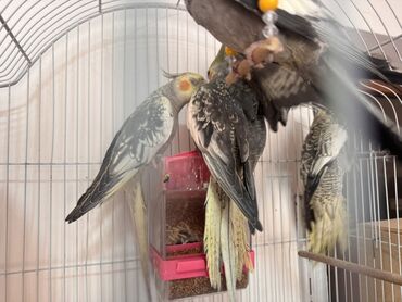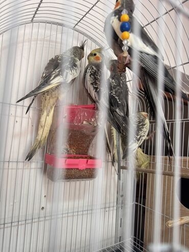 Məhsul: Nimfa tutuquşuları (Cockatiel) Xüsusiyyətlər: - Bir qəfəsdə bir neçə nimfa tutuquşusu - Rənglər: ağ-sarı (lutino), boz-ağ qarışıq (pied), tünd boz, sarı çirozlu və yanaqlarda narıncı ləkəl...