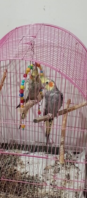 Nimfa (Cockatiel) tutuquşuları və qəfəs dəsti