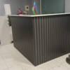 Ofis mebelləri dəsti - Resepsiyon stolu: Ön hissəsi ağ və taxta