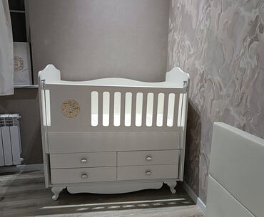 Uşaq beşiyi – taxta, çoxfunksiyalı model tulude var 2\birde - Material: möhkəm təbii ağac, hamar cilalı səth - Ölçü: tam ölçülü beşik bölməsi + içində çıxarılan kiçik yelləncək beşik (təkərlidir) ...