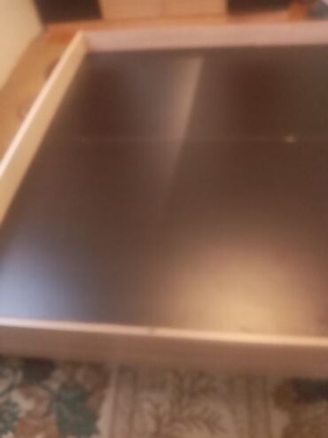 İkianalı böyük yataq dəsti Tecili satilir!!!Matras daxildi - Ölçü: təxmini 160x200 sm (king-size tipli iki nəfərlik) - Korpus: açıq ağac laminat, alt hissə qapalı baza ilə - Başlıq: bej rəngli yum...