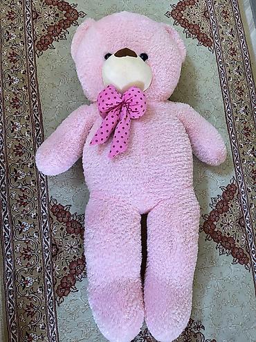 Böyük yumşaq oyuncaq ayı - Hündürlüyü: 150 sm (şəkildə qeyd olunub) - Rəng: boz - Material: yumşaq plyuş parça, içlik sıx və həcmlidir - Dizayn: iri parlaq gözlər, ağ-burunlu gülərüz sifət, boynun...
