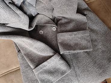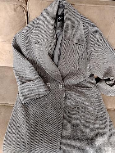 Qadınlar üçün qısa boz palto - Model: ikicərgəli görünüşlü, iki düyməli ön bağlama - Rəng: açıq boz, xırda toxumalı parça - Kəsim: sərbəst/oversize siluet, düşən çiyin xətti - Yaxa: geniş klassik q...
