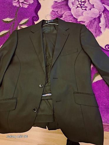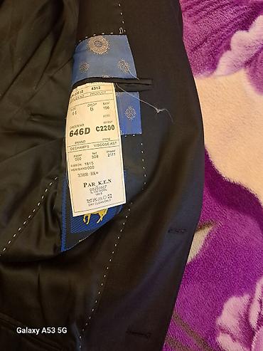 1 dəfə geyinilib,150 azn’ə alınıb,85 azn’ə satılır.S razmerdir. Kişi kostyum dəsti - Rəng: tünd göy (xırda naxışlı, incə zolaqlı faktura) - Dəst: 2 düyməli pencək + ikiqat sra (double-breasted) j...