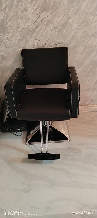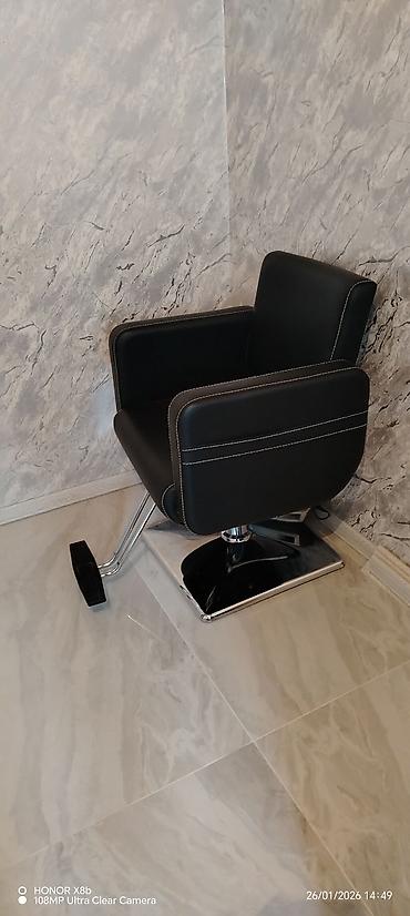 Salon kreslosu – rahat başdayağı və yumşaq yastıqlı oturacaq • Təyinat: bərbərxana/gözəllik salonu üçün peşəkar iş kreslosu • Üstlük: dəriyəoxşar, təmizlənməsi asan, su və ləkəyə davamlı materia...