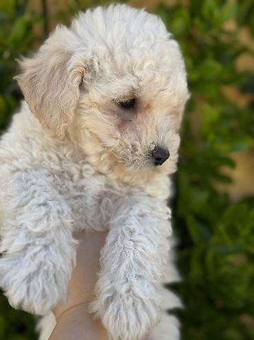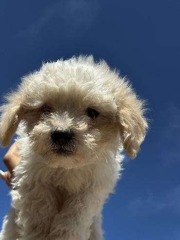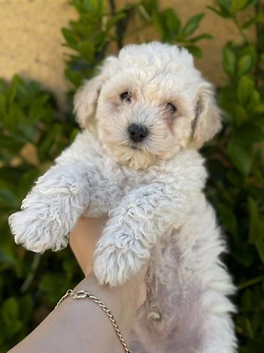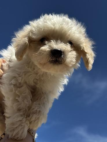 Balaca kaniş tipli, krem rəngli, tüklü it balaları Xüsusiyyətlər: - Cinsə bənzər görünüş: oyuncaqlıq ölçülü, qıvrım-yumşaq kürk, qısa burun, qara göz və burun - Rəng: açıq krem/bej tonları - Xasiy...