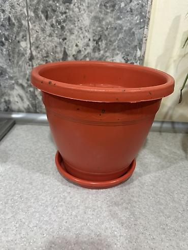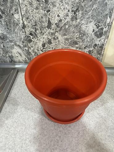 İki ədəd plastik gül qabı dəsti - Rəng: kərpic-qırmızı - Material