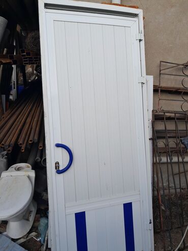 - Tam panel qapılar (ağ, zolaqlı dekorlu, mavi tutacaqla olan variant daxil).