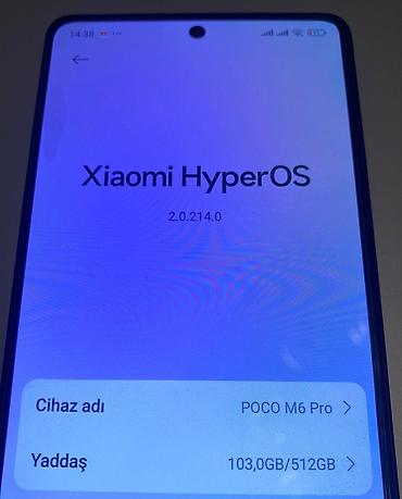 POCO M6 smartfon (0519884315) elaqe nomresi WhatsApp işleyir - Model: POCO M6 - Yaddaş: 256 GB daxili yaddaş (34.4 GB istifadə olunub) - OS versiyası (POCO üçün): 2.0.203.0 VNTRUXM - Android vers...
