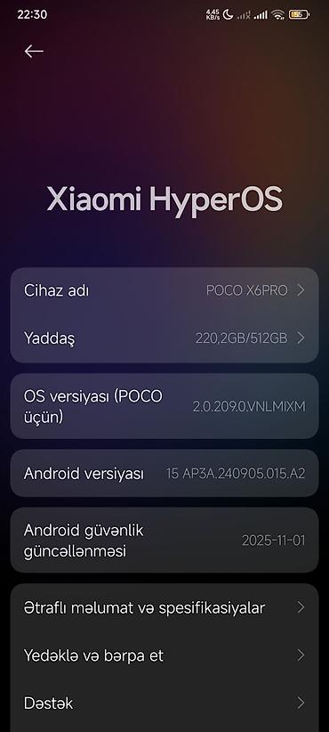 - OS: Xiaomi HyperOS (POCO üçün 2.0.209.0.VNLMIXM)