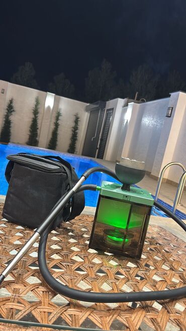 - Kub formalı, şəffaf gövdəli su qabı: içəridə rəng dəyişən LED işıqlar (mavi/qırmızı/yaşıl) atmosfer yaradır.