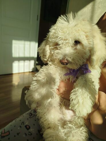 Miniatür pudel balası - Cins: toy/miniatür pudel - Rəng: krem–ağ qarışığı, qıvrım tüklü - Xarakter: mehriban, oynaq, ağıllı, uşaq və digər ev heyvanları ilə tez ünsiyyətə girir - Tüklənmə: hipoall...