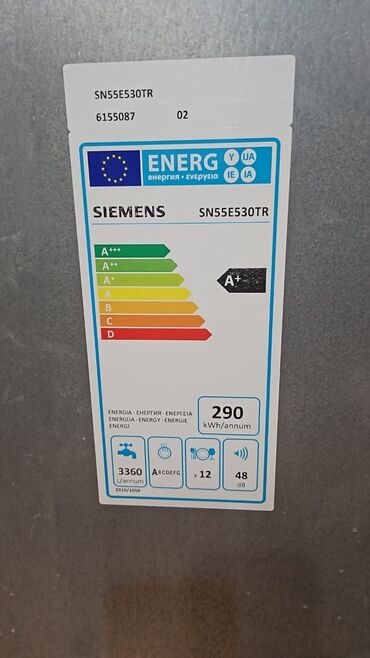 Siemens qabyuyan maşın – paslanmayan polad korpus, tam ölçülü. Xüsusiyyətlər: - Ön paneldə mexaniki düymələr və LED göstəricili ekran - Proqramlar: auto, eco, turbo/sürətli yuma, şüşə/incə, islatm...