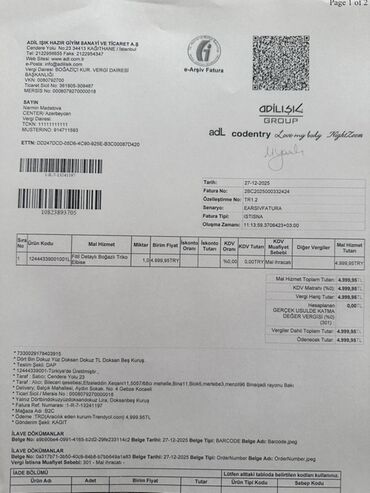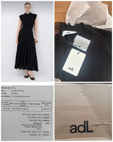 - Sənəd: məhsul üçün e-Arşiv Fatura görüntüləri (adL – Adil Işık) əlavə edilib; məhsul adı sənəddə “Fit Detaylı Boğazlı Triko Elbise” kimi qeyd olunub