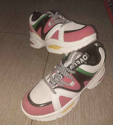 - Dizayn: çoxrəngli “dad sneaker” üslubu – çəhrayı, ağ, qara və yaşıl panellər, arxa hissədə rəngli parıltılı detal