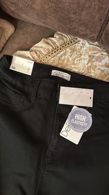 Qara rəngli denim şalvar - Model: düz kəsim, yüksək belli - Material: klassik cins parça (etiketli) - Rəng: tünd boz/qara yuyulmuş effekt - Ciblər: ön və arxa klassik 5-cibli dizayn - Bağlanma: fe...