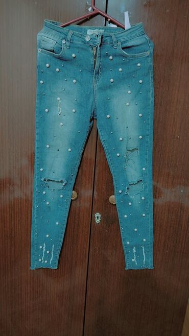 Ikili şalvar 1) Mavi cins şalvar Razmer S - Diz və bud hissələrində