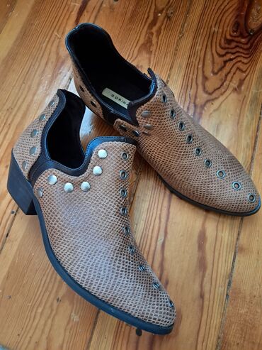 Model: Dəri fakturalı, perçin detallı ayaqqabı. Ölçü 38. Pekin istehsalı