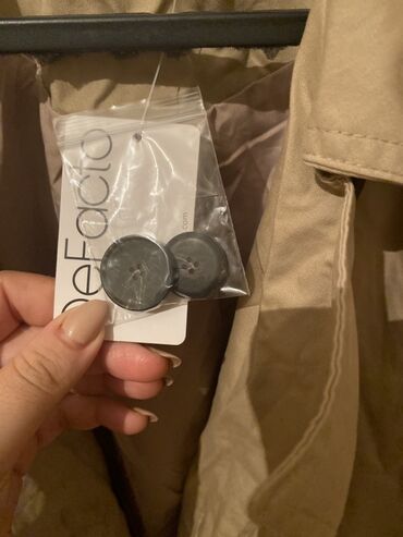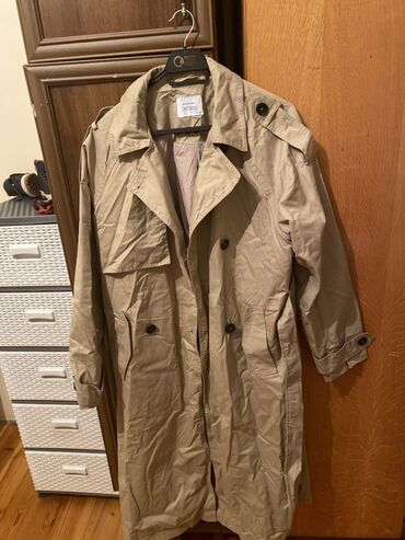 Etiketləri üzərindədir, məhsul identifikasiyası etiketdə “Trenchcoat/Beige” kimi göstərilib. Klasik kəsim, uzun ölçü və rahat oturuş.