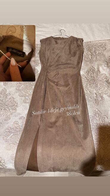 Qeyd (şəkildə yazılıb): “Satılır 1 dəfə geyinilib, 38 ölçü”.
