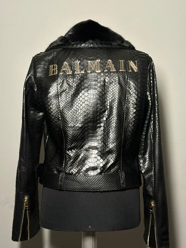 - Dizayn: biker stilində asimmetrik ön fermuar; arxada qızılı rəngdə “BALMAIN” yazılı iri loqo