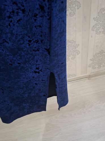 - Don: Tünd göy rəngdə, məxməri (crushed velvet) fakturalı, uzunqol, bədənə oturan kəsim. Midi/uzun ölçü (baldır altına qədər). Yumru yaxalı. Zərif, minimal dizayn – mərasim və axşam dəvətləri üçün uyğun.
