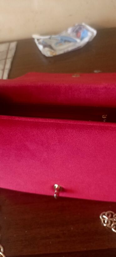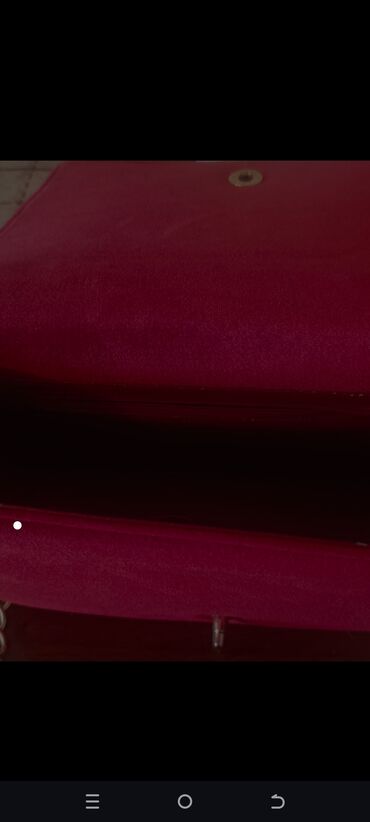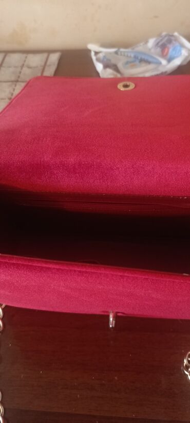 Qırmızı rəngdə, yumşaq məxmər teksturalı qadın çantası. Üst hissədə quilt (romb) tikiş detalları və ön tərəfdə metal “CC” loqosu. Yuxarıda əl tutacağı, yanlarda çıxarıla bilən metal zəncirli çiyin qayışı (zəncir boyunca eyni rəngdə rahatlaşdırıcı dəri/tekstil hissə) mövcuddur. Maqnitli qapaq bağlanışı. İç hissə bölməli quruluşa sahibdir: əsas bölmə, iç tərəfdə gizli fermuarlı ciblə təşkil olunub. Qızılı tonlu metal furnitura və dekorativ elementlər. Kompakt ölçülü, gündəlik və ya axşam kombinləri üçün uyğundur. Rəngi parlaq qırmızı, materialı toxunuşda yumşaqdır.