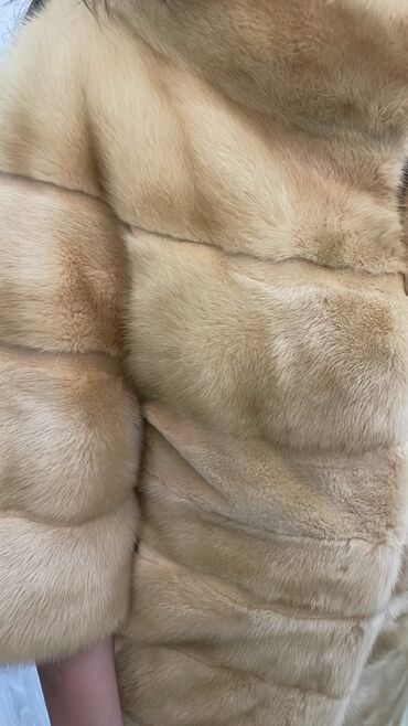 - Material: orijinal mink (qızılı-bej tonlarında), eninə panellərlə tikili